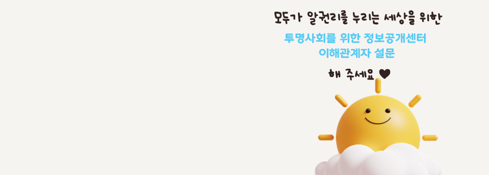투명사회를 위한 정보공개센터는 감추어져 있는정보의 대중화를 통해 시민의 알 권리를 실현하고사회전반의 투명성과 책임성을 높여나가는 것을목적으로 활동합니다.