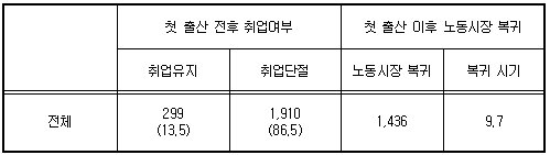 첫 결혼으로 인한 경력단절자의 취업복귀시기