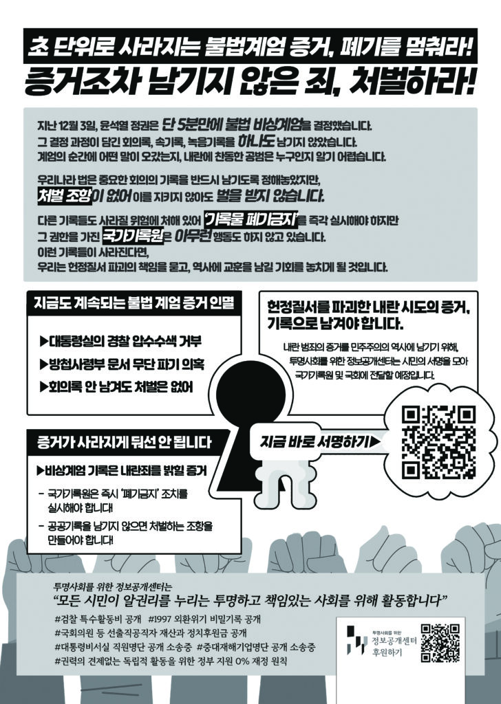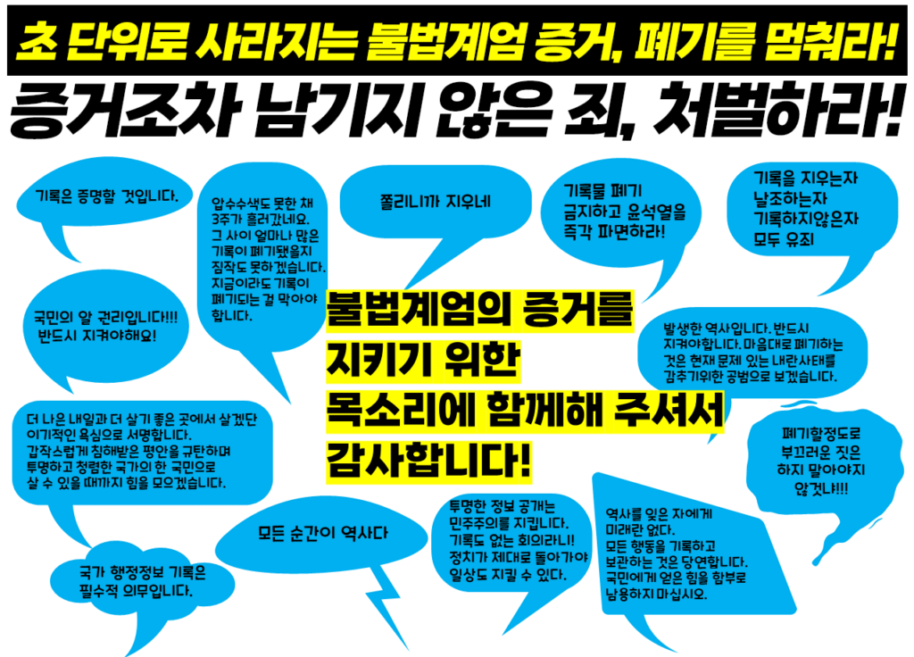 시민 여러분의 서명으로 불법계엄의 증거를 지켜주세요!