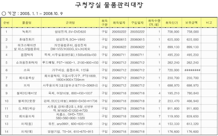 정보공개센터 김혜영회원이 지난해 강남구 구청장실의 물품관리대장을 정보공개청구했습니다