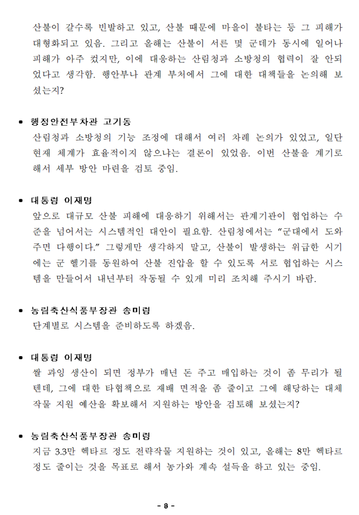 이미 민간 부문에서는 많은 사람들이 AI를 활용해 회의를 녹음으로 기록한 뒤, 녹취록과 요약 서비스를 이용해 신속하게 회의록을 작성하고 공유한다. 게다가 우리는 윤석열 정부 당시 비상계엄 검토 논란을 통해 ‘국무회의 기록이 없다’는 초유의 사태를 경험했다. 이제는 모든 회의에 녹음기록과 속기록을 철저히 남기고, 예외적인 비공개 안건이 아니라면 시민들이 시의적절하게 회의록을 열람할 수 있도록 회의록 작성과 공개 관행도 바뀌어야 한다.
