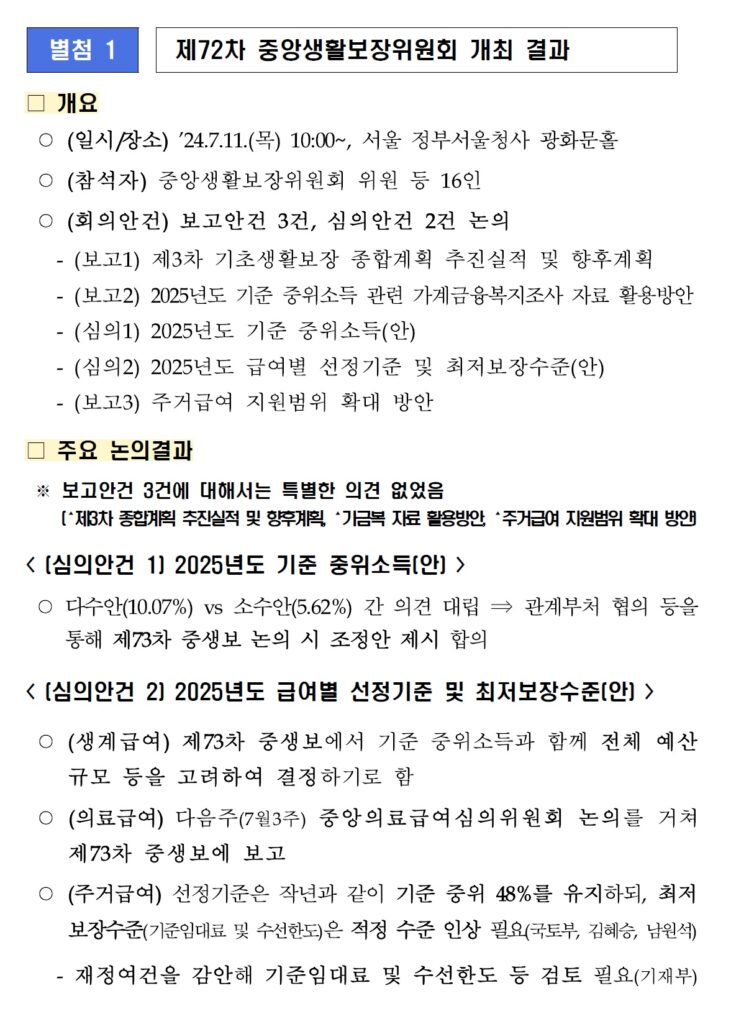 전년도 회의 결과를 읽어보면 복수의 2025년도 기준 중위소득(안)을 두고 대립이 있었다는 것만 알 수 있고, 정작 그 안이 무엇이었는지는 알 수 없다. 누가 무엇을 두고 대립했는지도 알 수 없다. 다음 회의 결과 보고에는 결정된 기준중위소득과 급여 수준만 적혀 있다. 어떤 상황과 맥락에서 최종 결정이 이뤄진 것인지는 아무도 알 수 없다.