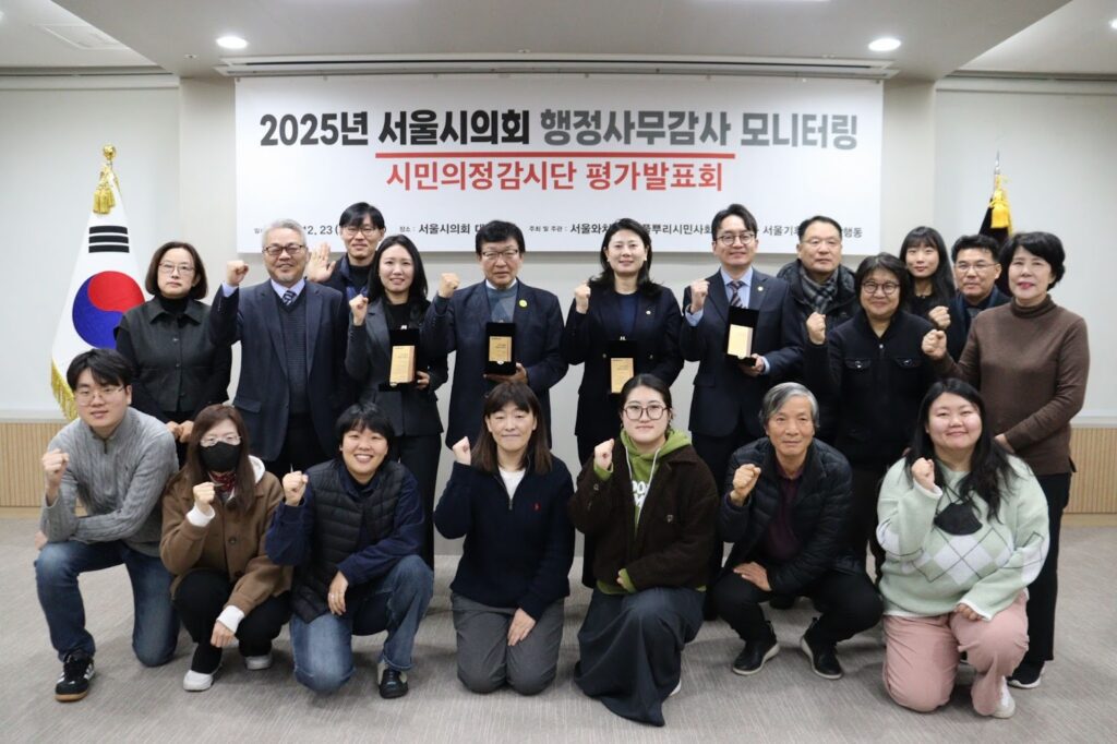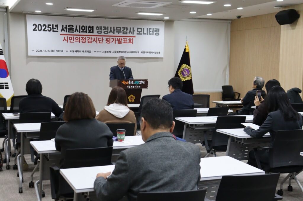 서울Watch, 서울풀뿌리시민사회네트워크, 서울기후위기비상행동은 23일 오전 10시 30분 서울특별시의회 의원회관 제2대회의실에서 「2025 서울특별시의회 행정사무감사 시민의정감시단 평가발표회」를 열고, 시민 152명이 직접 평가한 서울시의회 행정사무감사 결과를 공개했다.