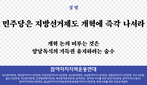 [성명] 민주당은 지방선거제도 개혁에 즉각 나서라