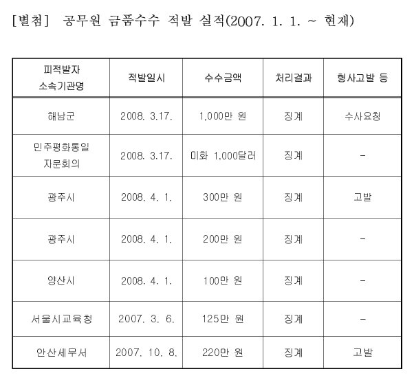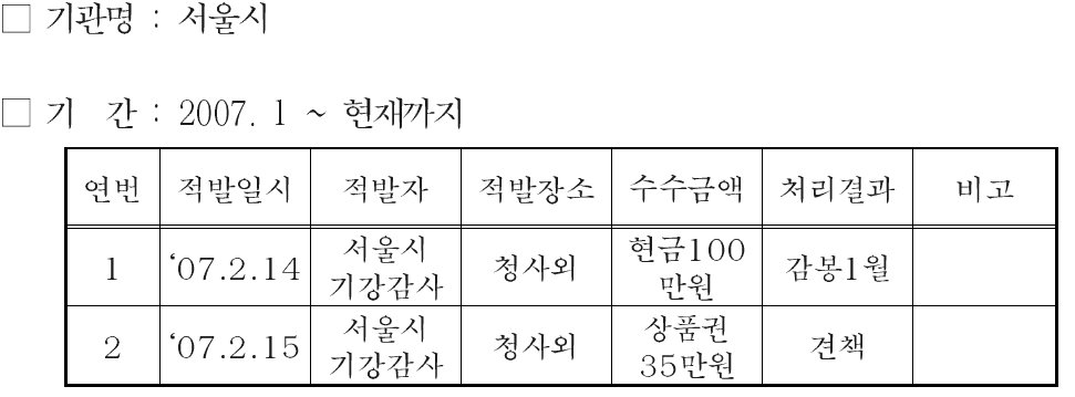 위례시민연대에서 감사원과 서울시, 서울시교육청을 상대로 공무원의 금품수수 적발 실태에 대해 정보공개청구를 했습니다.
