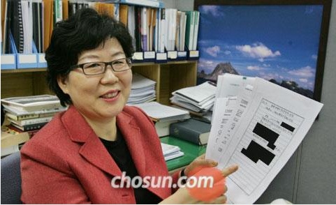 <유미림연구원이 손에들고 있는 문서를 보면 검은줄로 비공개 되어있는 것을 볼 수 있다.>