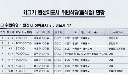 얼마 전 정보공개센터가 서울시를 상대로 청구해 부분공개처분을 받은 쇠고기원산지표시 위반 업소의 자료 역시 식품의약품안전청에서는 이미 보도자료까지 내며 자발적으로 공개한 자료였습니다.