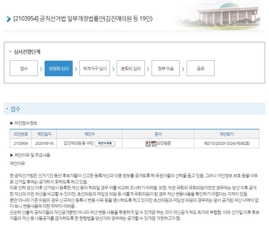 이 사건 직후인 2020년 9월, 열린민주당 김진애 전 의원이 ‘당선자의 경우 후보자 시절 공개한 서류를 선거 이후에도 공개하도록’ 하는 공직선거법 개정안을 발의하기도 했지만 해당 법안은 1년반이 지난 지금도 소관위에 계류중이다.