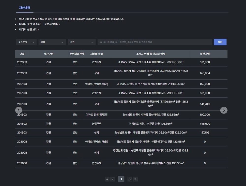 국회의원의 재산 정보는 의원 활동을 통해 얻은 정보를 개인이나 가족의 재산 증식에 이용하지 않는지, 건물이나 주식 소유와 관련해 정책에 이해관계가 개입될 여지가 있는지 등 공직자로서의 책무성을 검증하기 위한 주요 자료가 될 수 있습니다.