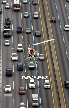 <사진:헬기를 동원해 교통위반 단속을 하고있는 모습>