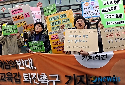 국제중에 대한 사회적 합의가 이루어지지 않았다는 이유로 국제중 설립을 보류했다가 서울시교육청이 교육위의 결정을 단 하루만에 번복하고 국제중 추진을 강행했었습니다.