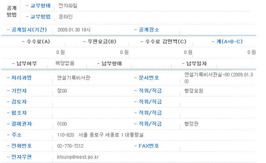 청와대에 정보공개청구를 해보신 분들은 다른 행정기관과 다른 것을 발견 할 수 있습니다. 정보공개청구를 하면 담당 공무원들의 성명과 연락처가 기재되어 있습니다.