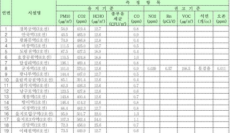 내가 이용하고 있는 지하철의 공기질은 어느 정도인지 한번 살펴보시기 바랍니다.
